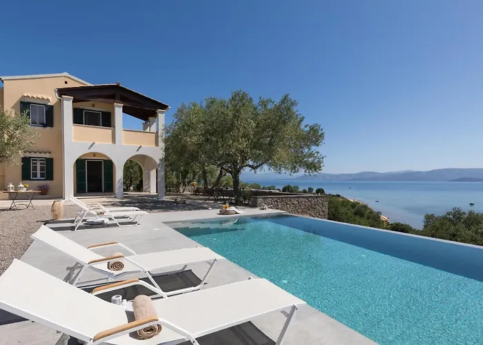 A tengerre néző terasszal rendelkező 2 hálószobás The Gunnery House Villa Kávosz 50 perces autóútra fekszik a Korfu nemzetkozi repülőtértől.